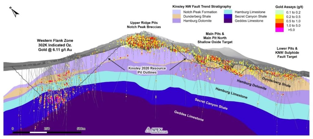 Today, Kinsley hosts current mineral resources of 418,000 indicated ounces at 2.63 g/t gold and 117,000 inferred ounces at 1.51 g/t gold, which include 302,000 ounces averaging 6.11 g/t gold in the high-grade Western Flank Zone.¹
